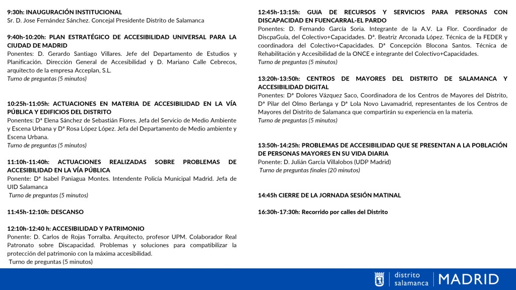 Se remite el programa final de las II Jornadas de Accesibilidad del Distrito de Salamanca, esperamos contar con su participación y difusión.