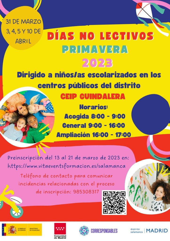 Hoy se abre el plazo de inscripción para el campamento urbano que se celebrará en nuestro cole los días 31 de marzo y 3, 4, 5 y 10 de abril, organizado por la junta de distrito, coincidiendo con las vacaciones de Semana Santa. El plazo estará abierto hasta el martes 21.