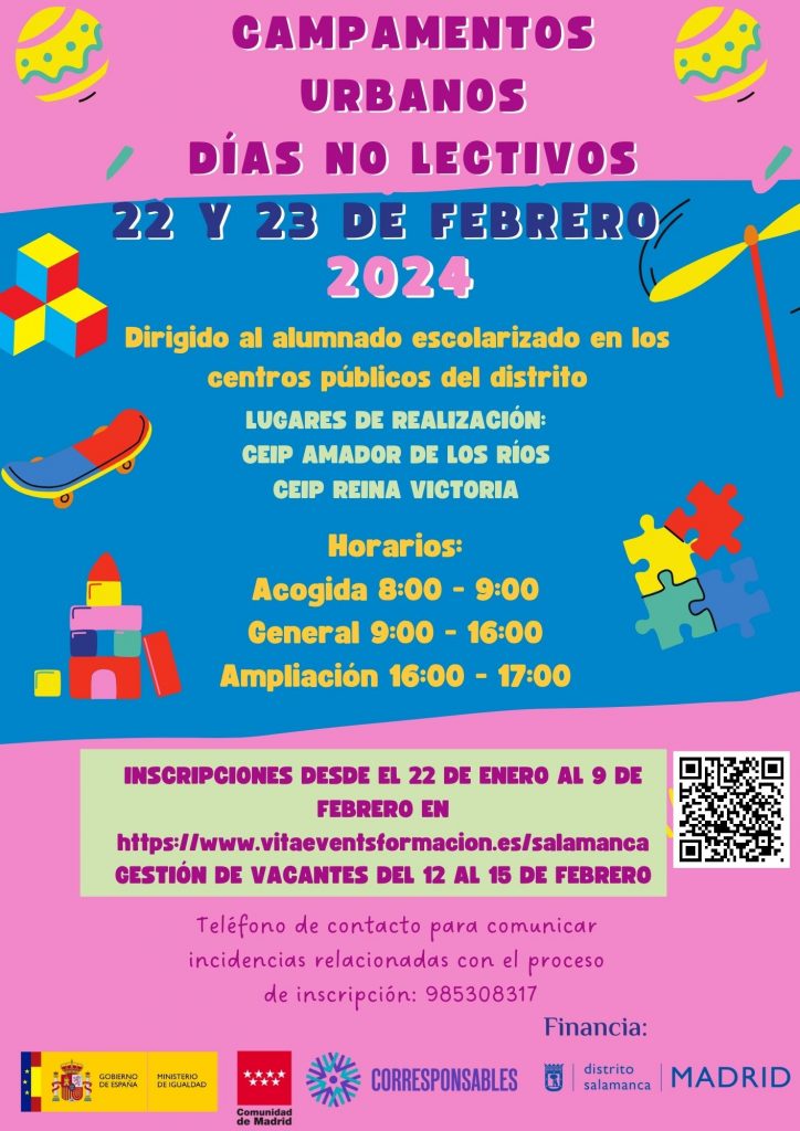 Este viernes día 9 es el último día para solicitar plaza en los campamentos urbanos que organiza la Junta de Municipal para los próximos 22 y 23 de febrero, no lectivos. En esta ocasión serán en el CEIP Amador de los Ríos y en el CEIP Reina Victoria.