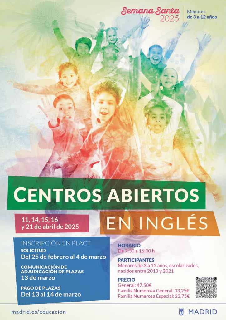 Si buscas campamento para los días no lectivos de Semana Santa (11, 14, 15, 16 y 21 de abril), puedes inscribirte desde hoy 25 de febrero hasta el 4 de marzo en los ‘Centros abiertos en inglés‘, que organiza el Ayuntamiento de Madrid. Este año, se realizará en el CEIP Reina Victoria.